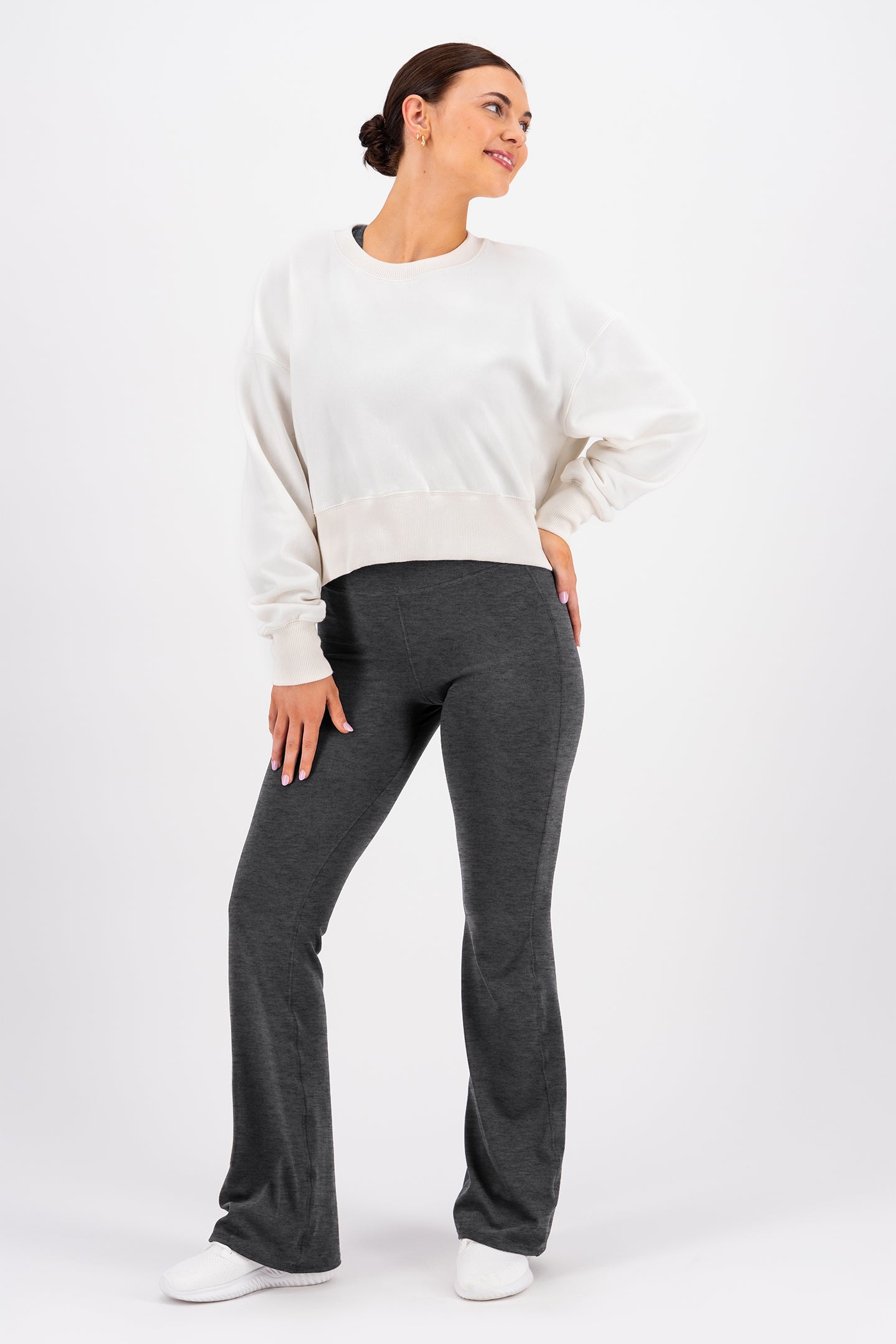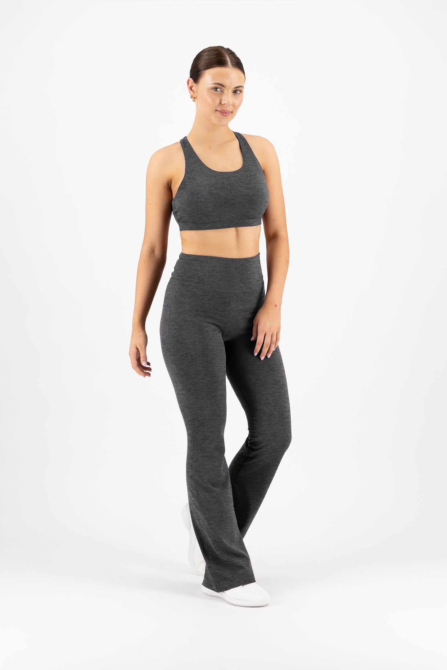 I just can't get over how soft these leggings are! They are so comfortable yet supportive in the waist. The length is great, even for someone that is petite and the flare is not overpowering. It pairs perfectly with the tank top and I'm excited to get these in more colors!