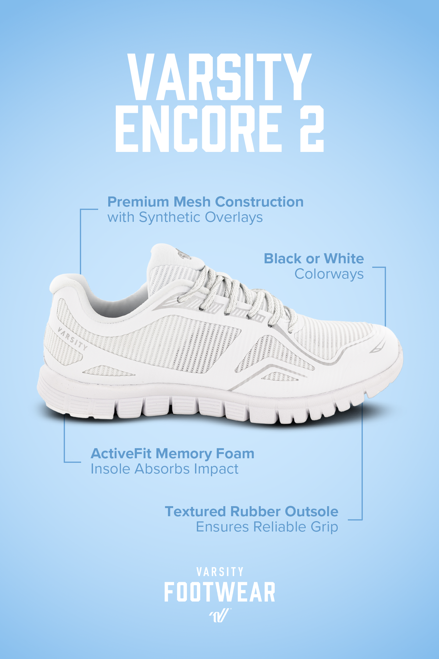 These cheerleading shoes combine lightweight construction with durability, making them ideal for practices, games, and competitions. The classic white design makes the Encore 2 a staple in any routine!