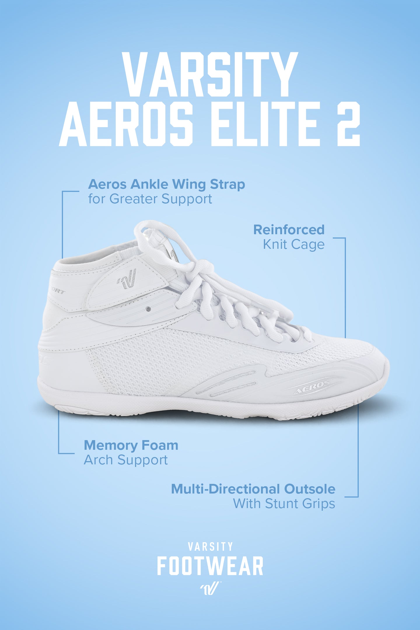 Varsity cheer shoes like the Phantom and Ascend Air are designed for flexibility, lightweight feel, and shock absorption--ideal for high-impact tumbling passes and competitive cheer. The Ascend Air is approximately 3.8 oz making it our lightest shoe for tumblers. Many cheerleaders also prefer a high-top cheer shoe like the Aeros Elite for its secure sock-like fit and reinforced strap.