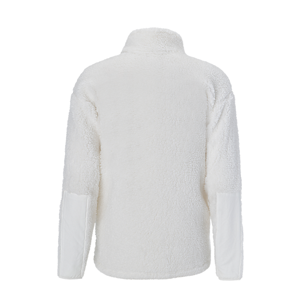Oversized quarter-zip pullover made of ultra plush Sherpa fabric provides the perfect combination of warmth and comfort. Athletic details like polymicro accent panels on the chest and forearm plus elongated back drop tail hem keep this Sherpa in style and on trend.