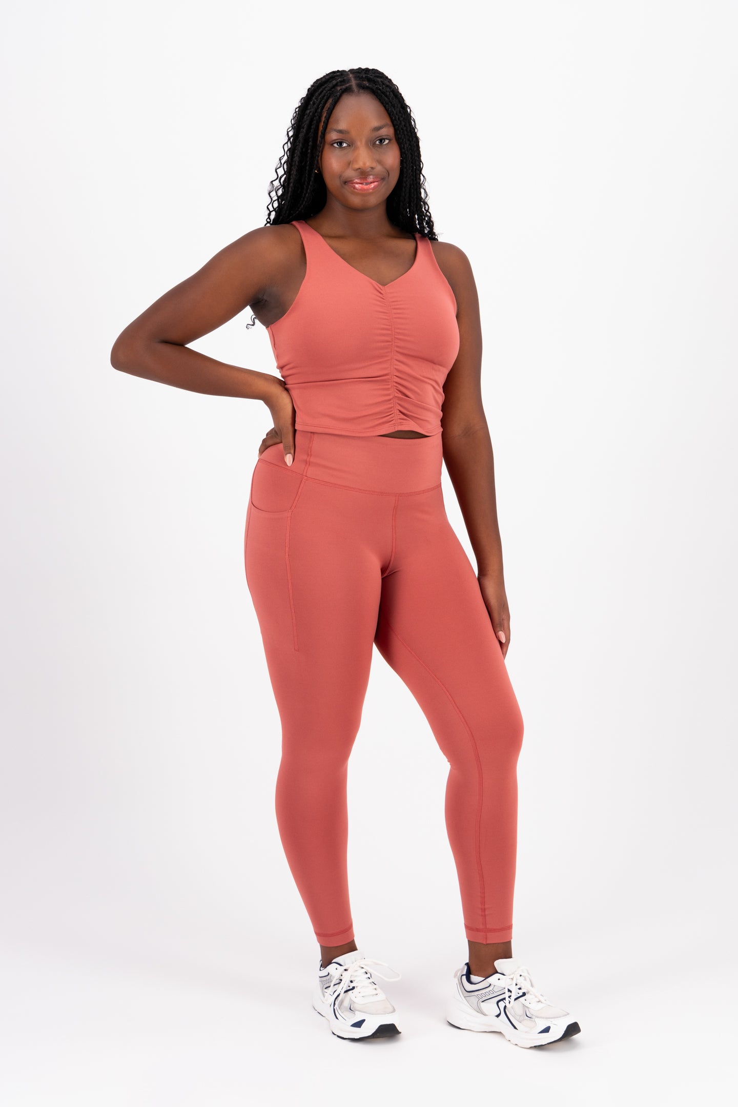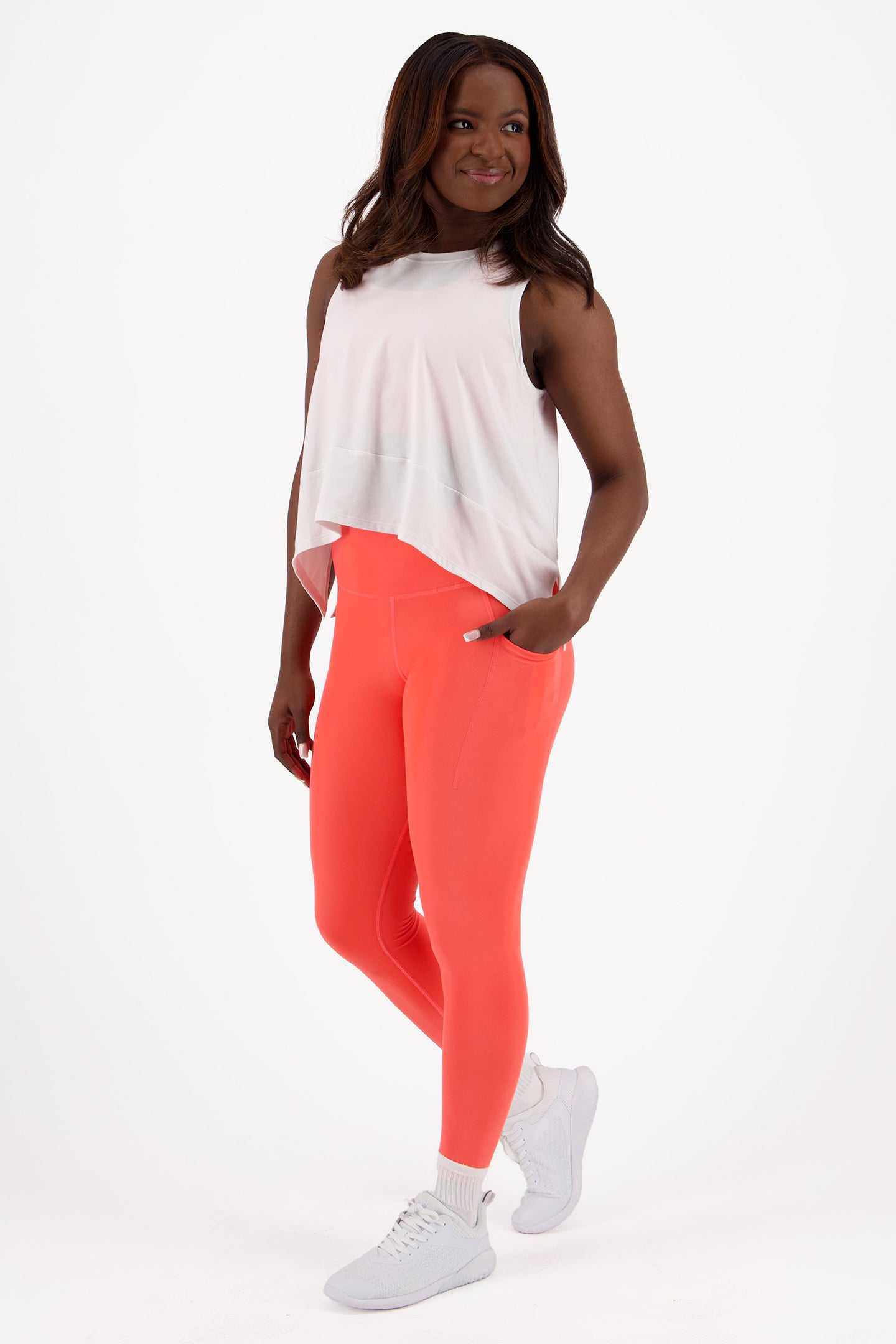 These are my new go-to leggings! The material is soo soft and the structure and compression is perfect. The pockets are not too bulky and they fit my phone easily. I will be buying in every color! I'm extra petite (4'10") and I didn't have to cuff these at the ankle. I typically wear a 6 or 8 in lululemon leggings, and the Large fits really comfortably.